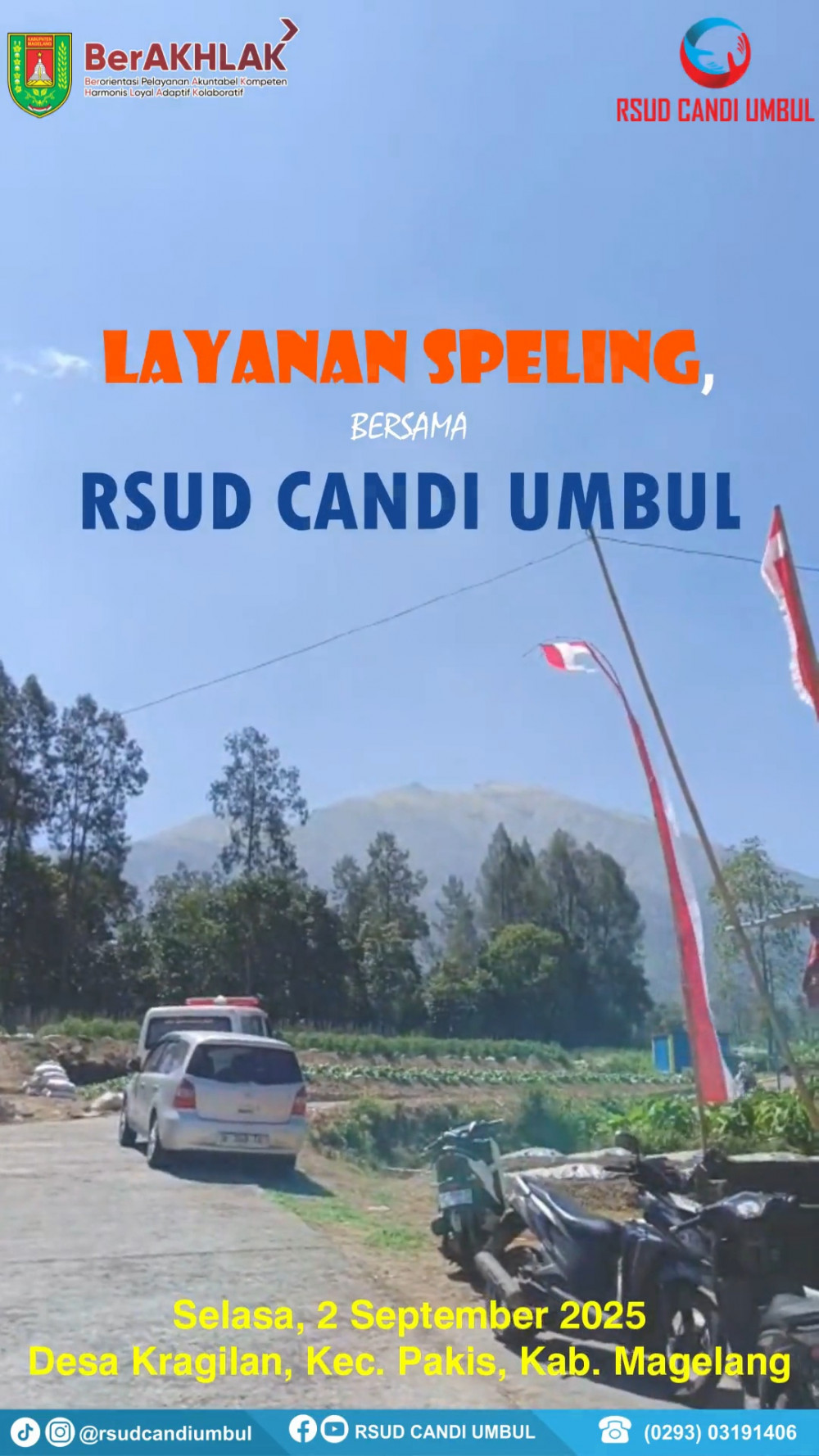 Dalam rangka mendukung program kesehatan Gubernur Jawa Tengah, RSUD Candi Umbul melaksanakan kegiatan Speling (Dokter Spesialis Keliling) pada hari Selasa, 2 September 2025, yang bertempat di Desa Kragilan, Kecamatan Pakis, Kabupaten Magelang. Kegiatan ini bertujuan untuk mendekatkan layanan kesehatan spesialistik kepada masyarakat di wilayah terpencil, sehingga mereka dapat memperoleh pemeriksaan dan konsultasi langsung dengan dokter spesialis tanpa harus pergi ke rumah sakit. Antusiasme warga sangat tinggi, dan kegiatan ini diharapkan dapat meningkatkan kualitas kesehatan masyarakat secara merata.